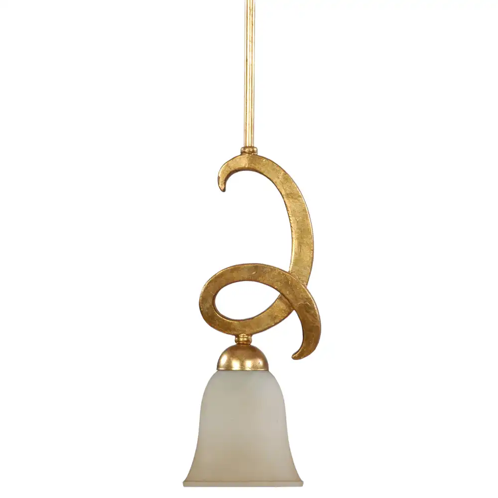 The 1-Light Pendant with Curved Metal Accent & Frosted Glass Shade showcases a blend of modern artistry and traditional craftsmanship, offering a unique decorative lighting solution for upscale interiors.