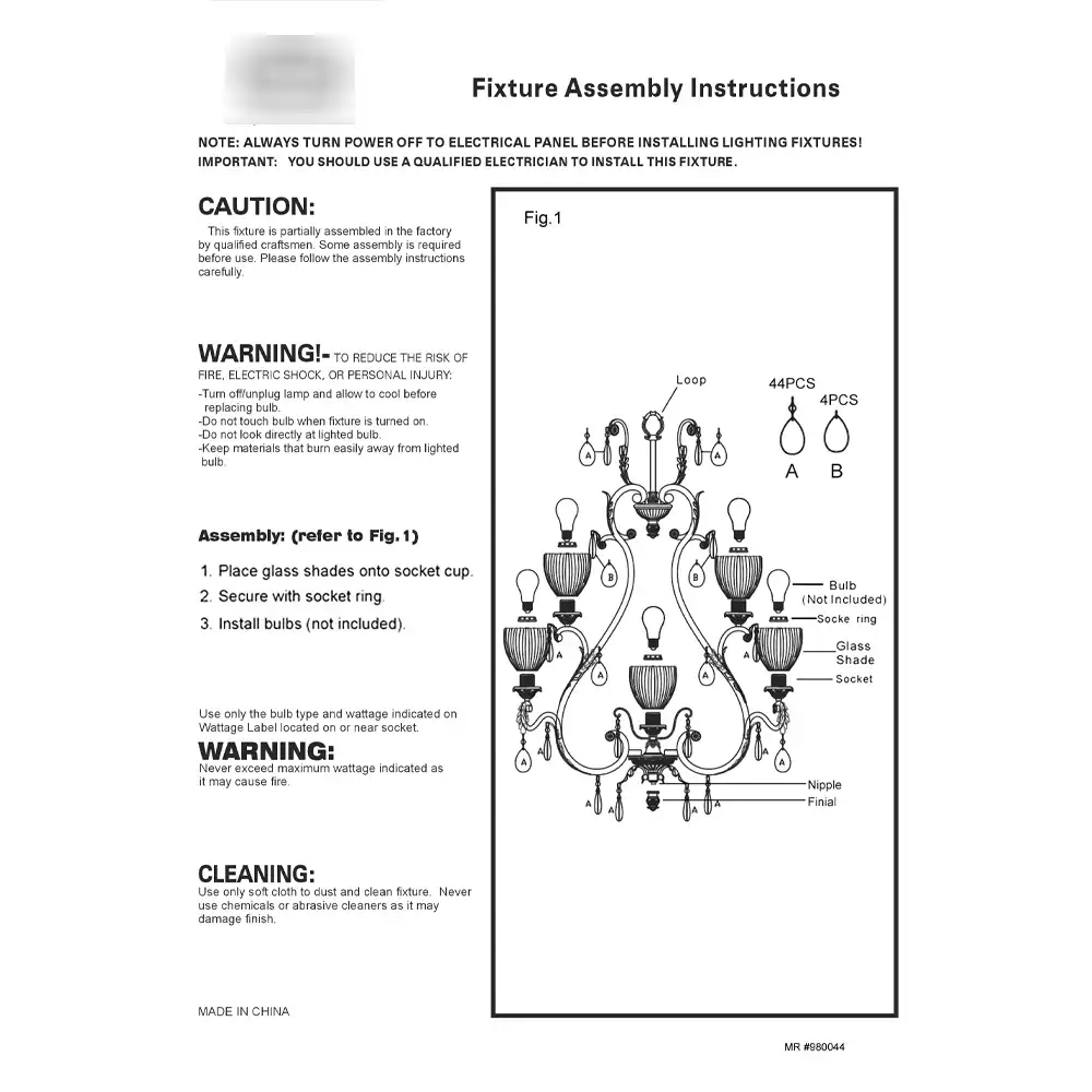 • Lower tier: 8 light holders with frosted glass shades.
