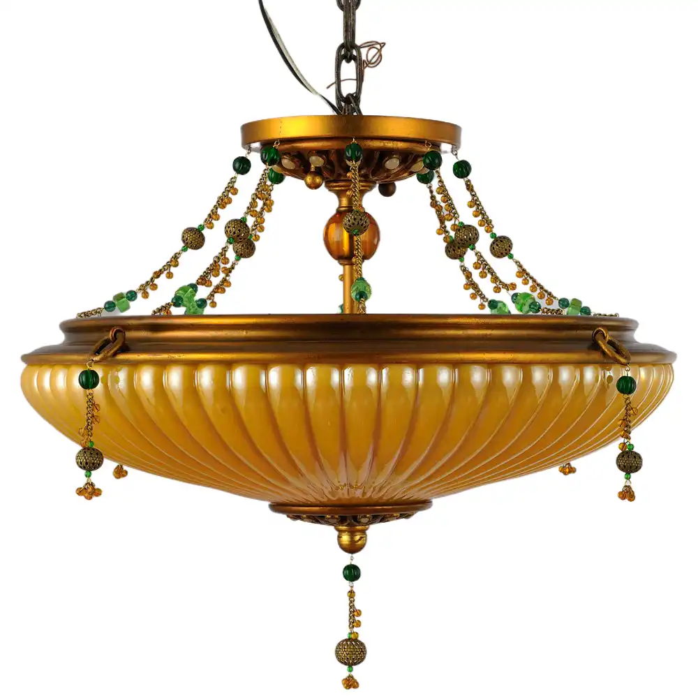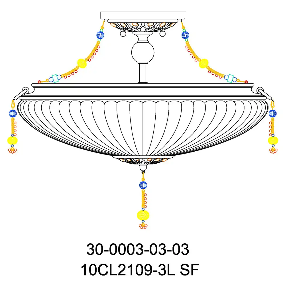 This 3-Light Semi-Flush Mount Pendant Light Fixture is a statement of artistry and elegance, designed to blend classical ornamentation with handcrafted quality. The fixture is made of durable high-strength metal with a hand-applied antique gold finish that exhibits a rich, warm tone with subtle shimmer.