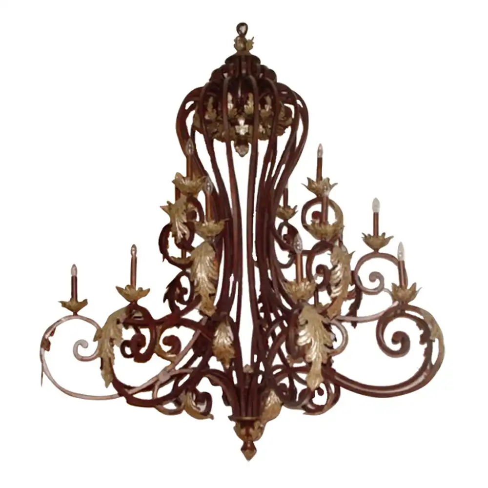 The 3-Tier 20-Light Grand Chandelier is a magnificent statement of classical artistry and handcrafted excellence. Meticulously constructed from high-strength metal, this impressive pendant features a rich rustic bronze finish with antique gold leaf accents, creating a luxurious patina that exudes old-world charm and timeless grandeur.