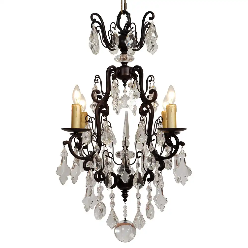 The 4-Light Antique Bronze Chandelier exudes timeless elegance and refined craftsmanship, blending classical European artistry with durable, high-strength metal construction. Featuring an antique bronze finish with rich espresso undertones and soft highlights of brushed gold, this handcrafted chandelier brings warmth and depth to any space. The surface finish is meticulously layered and lightly patinated, giving it a sophisticated aged-metal luster that pairs beautifully with the clarity of the crystal accents.