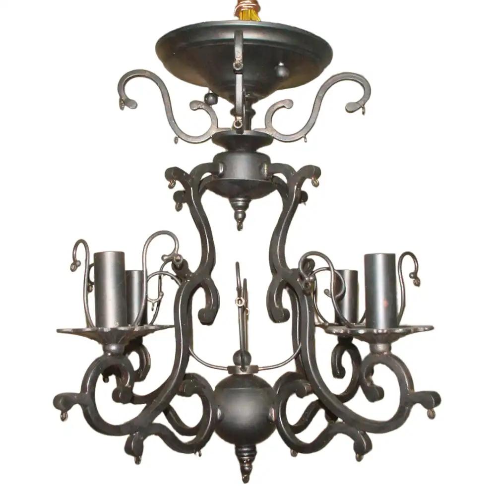 The 4-Light Hand-Forged Iron Semi-Flush Chandelier is an elegant expression of classical design and refined craftsmanship. Expertly handcrafted from high-strength wrought iron, this fixture features gracefully curved arms and an intricate framework, complemented by multiple small loops designed to suspend crystal bead accents for a luxurious, customizable finish.