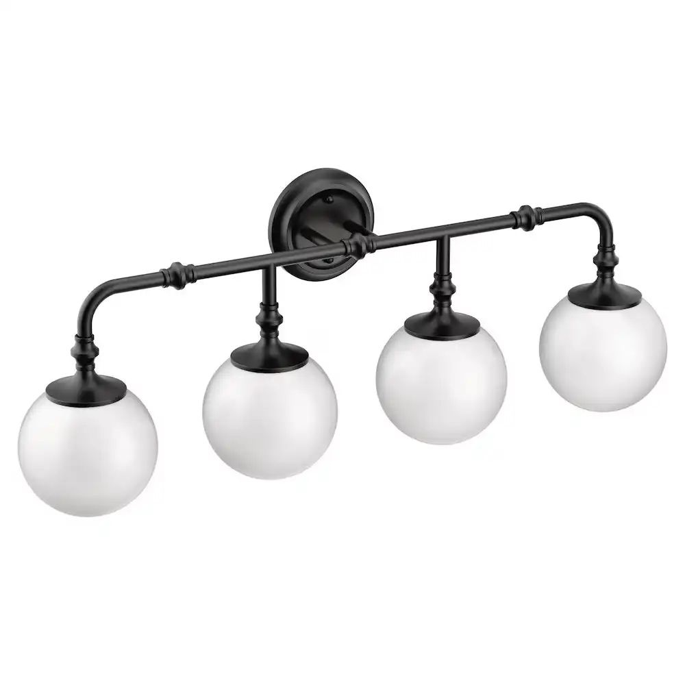 Be the first to review “4-Light Matte Black Wall Sconce with Frosted Glass Globe Shades”