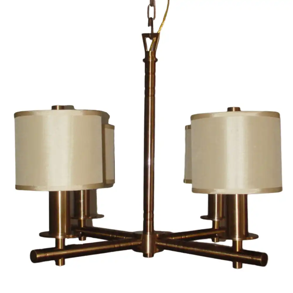 Expertly handcrafted from high-strength metal, this pendant ensures exceptional stability, durability, and long-term use. Its warm brass finish highlights the precision of the welded stems and the smooth contours of the structure, embodying both strength and artistry. Four cream-colored fabric drum shades softly diffuse the light, creating a welcoming and balanced illumination suitable for dining areas, living rooms, or hospitality spaces.