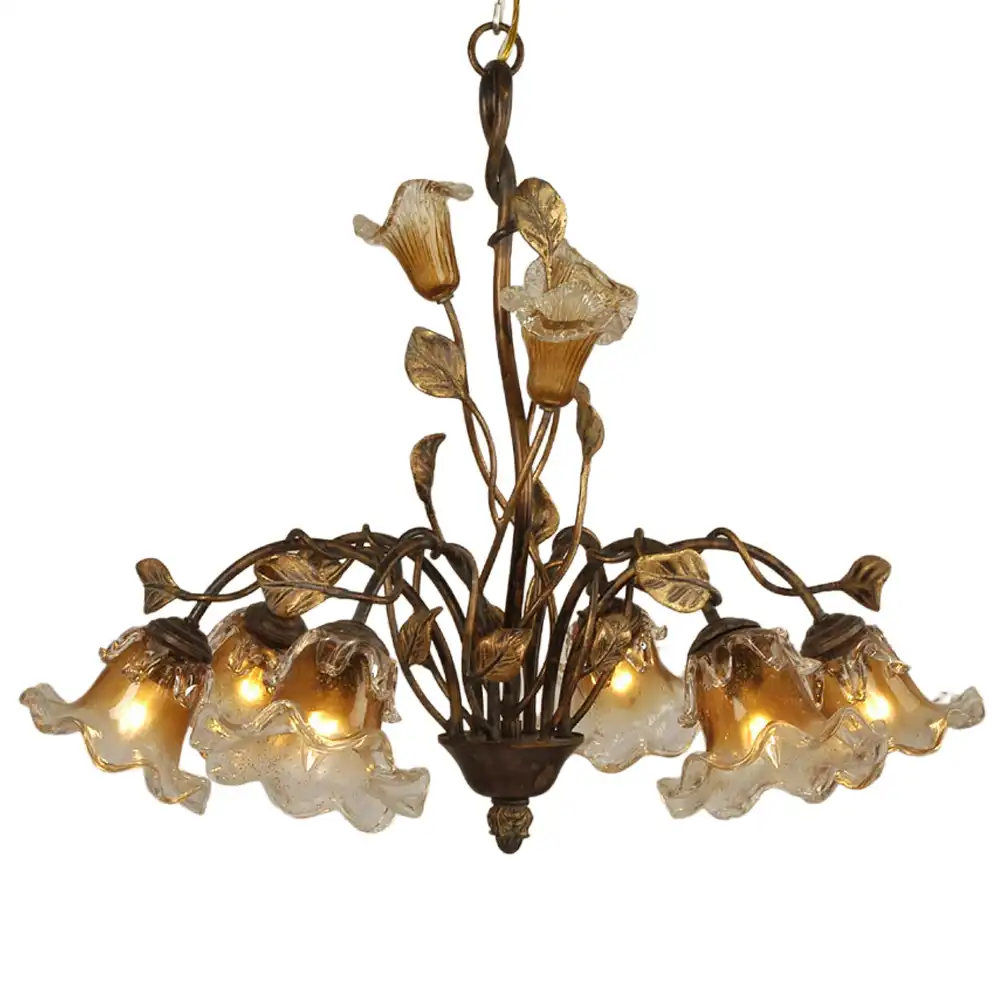 The 6-Light Vintage Floral Chandelier is a masterpiece of artistic lighting design, blending natural inspiration with timeless elegance. Handcrafted from high-strength forged metal, the fixture features a rich antique bronze finish with golden undertones, giving it a warm, vintage luster.