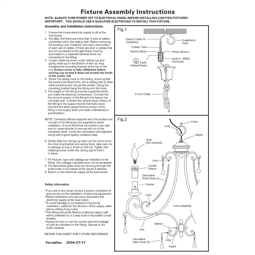 The chandelier showcases gracefully curved arms with sculpted candle-style holders, each supporting a bulb that evokes the charm of vintage candlelight. Cascading strands of clear crystal beads and precision-cut teardrop pendants provide a touch of sparkle, creating a captivating interplay of light and shadow.