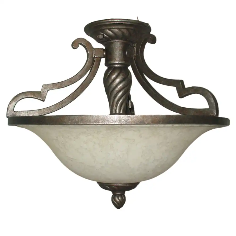 The Antique Silver 3-Light Semi-Flush Pendant Light Fixture combines elegant detailing with durable craftsmanship, making it a versatile choice for traditional and transitional interiors. A circular canopy anchors the design, while a twisted vertical stem suspends three light holders encased in a bowl-shaped white cloudy frosted glass shade. The lampshade is securely center-locked by the stem for stability and balance.