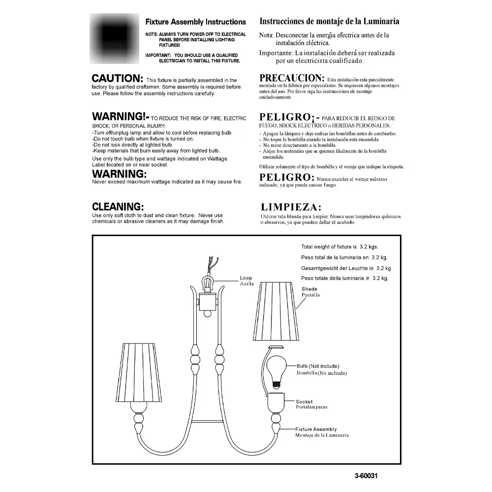 Design: Classic 3-light form with smooth arcs, crystal accents, and tapered fabric shades