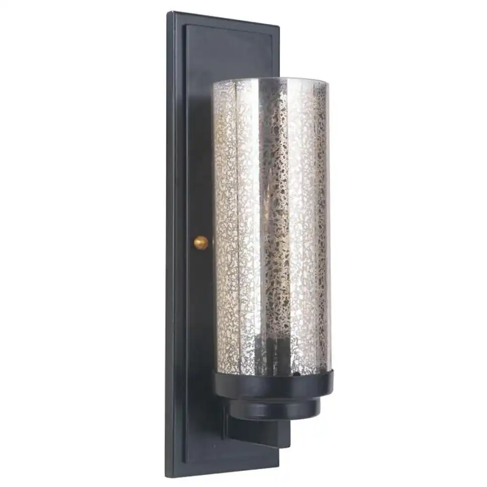 This single-light wall sconce is constructed from robust, high-strength metal, ensuring a stable structure that is built to withstand time and provide long-term compatibility. The sleek matte black finish provides a bold, contemporary foundation, offering a versatile and sophisticated aesthetic that complements a wide range of modern and classic decor. This durable finish, combined with the clean lines of the rectangular backplate and the tiered support, and the prominent mercury glass cylinder shade, creates an artistic and powerful presence. The mercury glass, with its distinctive speckled silvering, offers a unique reflective quality that adds depth and a touch of vintage glamor, while providing a soft, ambient glow (bulb not included) that is perfect for creating a dramatic and elegant atmosphere.