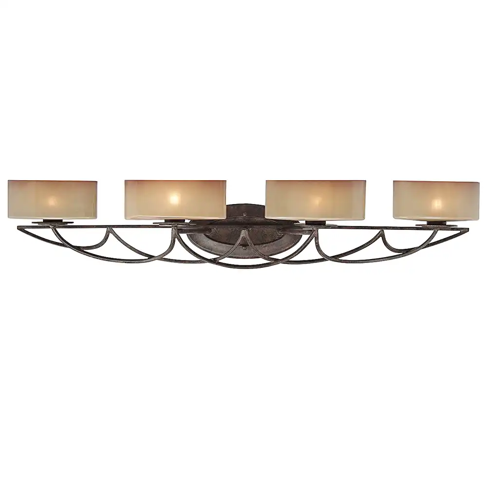 Introduce a touch of artistic flair and warm, inviting illumination to your interiors with our Artisan Iron Scrollwork 4-Light Vanity Sconce with Ombre Glass Shades. Meticulously handcrafted at our professional decorative light fixture factory in China, this exquisite wall lighting piece embodies a profound understanding of industrial, rustic-chic, transitional, and contemporary interior design. It seamlessly blends high-strength metal with a textured hand-applied distressed iron finish, intricate scrollwork, and four unique ombre glass shades. Designed for enduring beauty, stability, and long-term reliability, it’s an ideal selection for discerning designers and end-users seeking distinctive, artistic, and functionally superior lighting solutions for master bathrooms, grand powder rooms, or any space desiring a sophisticated, character-rich accent.