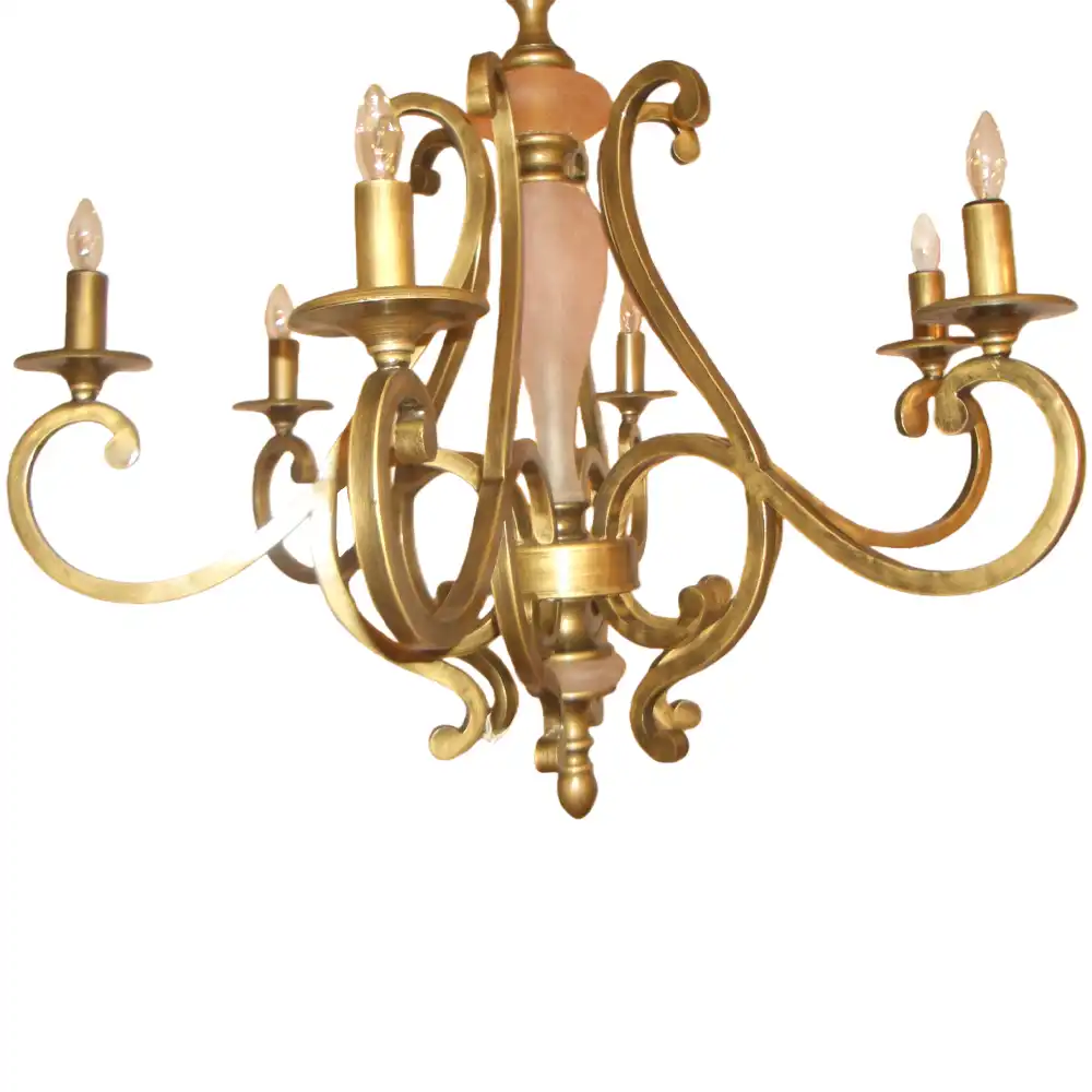 • Design: Classic six-arm chandelier with graceful scrollwork and a sculptural central column
