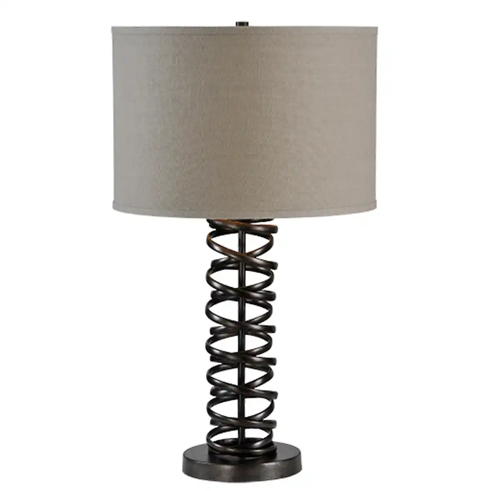 The Aurelia Spiral Metal Table Lamp embodies a refined balance between sculptural artistry and functional design. Expertly handcrafted from high-strength metal, the lamp features a dynamic open-spiral column base that creates visual movement and architectural sophistication. Its Dark Bronze finish adds a rich, contemporary depth with subtle sheen, enhancing both modern and transitional interiors. The piece is complemented by a taupe fabric drum shade, which softens the light to deliver an inviting, ambient glow.
