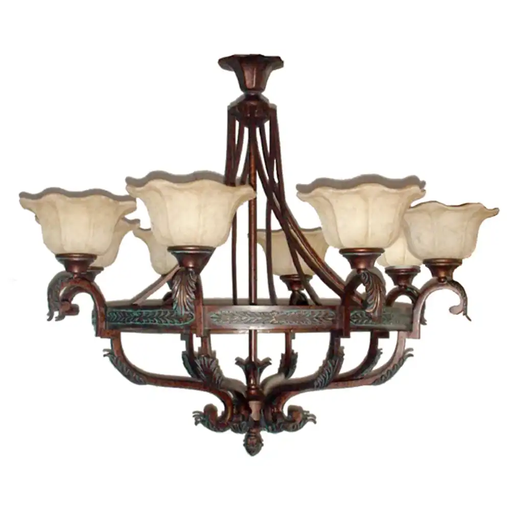 The Aurellia 8-Light Chandelier is an exquisite blend of organic detailing and symmetrical structure, crafted to bring a sense of elegance and nature-inspired beauty to luxury interiors. Designed with a deep American bronze finish, this chandelier is perfect for resorts, villas, banquet spaces, and boutique interiors that value artisan-like detailing with commercial-grade stability.