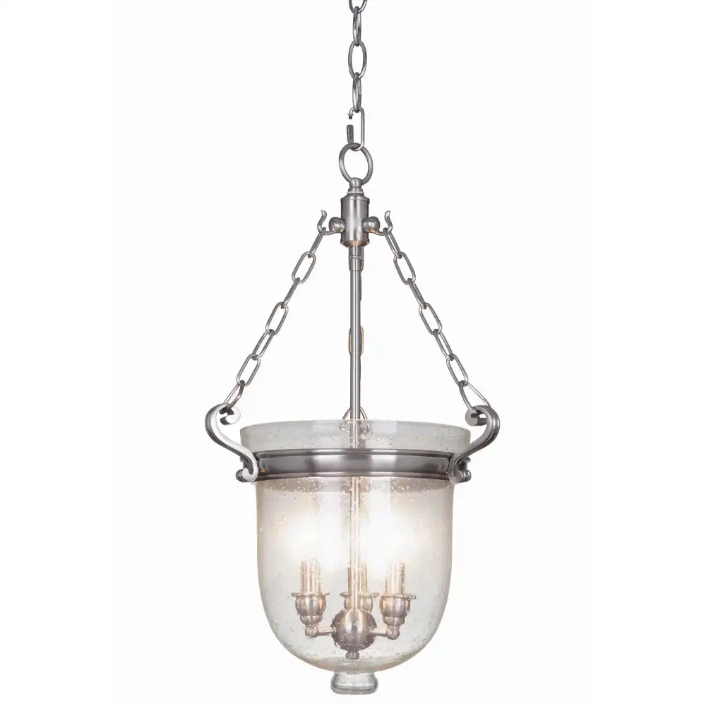 Be the first to review “Aurora Satin Silver Nickel 3-Light Pendant – Bubbled Clear Glass Shade”