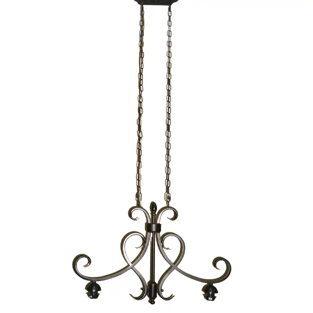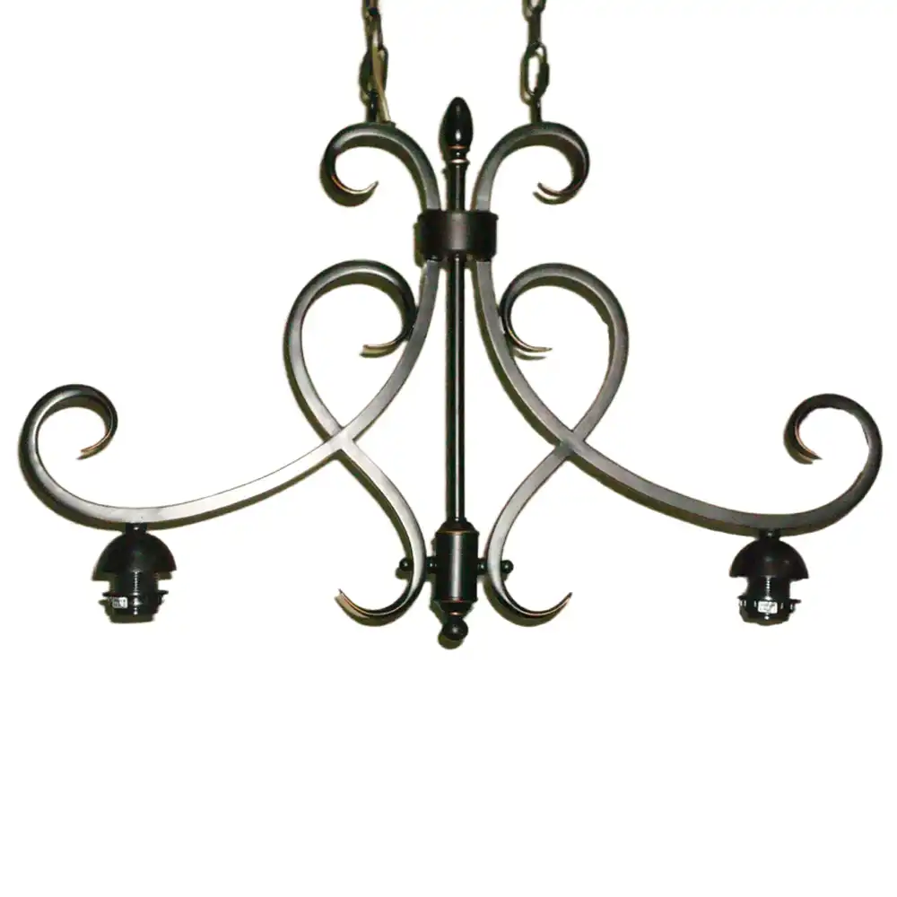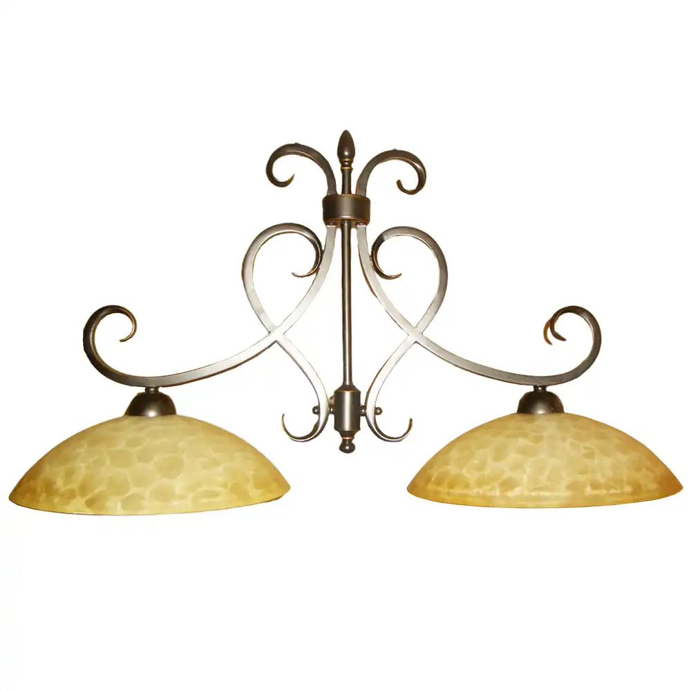 The Bellagio 2-Light Linear Pendant Light seamlessly combines refined metal craftsmanship with the soft warmth of hand-finished glass. The fixture is handcrafted from high-strength wrought metal and features a dual-tone finish of Antique Brushed Silver and Bronze accents, offering a sophisticated interplay between cool metallic sheen and subtle aged warmth. The sweeping scroll arms and central finial design showcase classical European artistry reinterpreted for modern interiors.