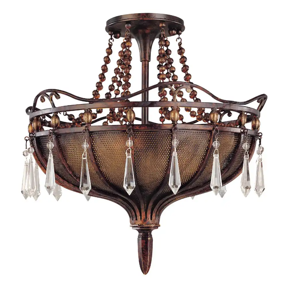 The Bellagio 3-Light Semi-Flush Mount captures the essence of classic European elegance through refined craftsmanship and timeless materials. Expertly handcrafted from high-strength metal, this fixture features a vintage bronze finish — a meticulously layered patina combining deep bronze undertones with warm copper highlights and subtle touches of antiqued gold. The finish evokes the richness of aged metalwork, adding depth and character that complements both traditional and transitional interiors.