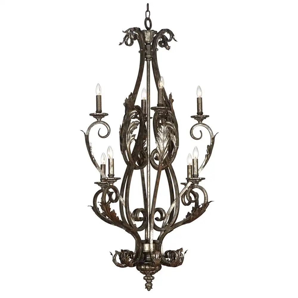 The Celestia Tiered 8 chandelier is an elegant 2-tier lighting centerpiece designed for grand interiors with a refined classic-modern aesthetic. Crafted from premium silver gold metal, this chandelier features a flexible & adjustable suspension chain attached to a central vertical stem that supports two cylindrical accents at different heights.