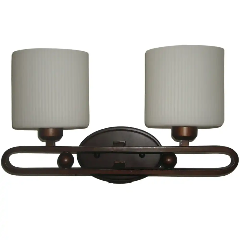 This two-light wall lighting fixture is constructed from robust, high-strength metal, ensuring a stable structure that is built to withstand time and provide long-term compatibility. The distinguished hand-applied rubbed bronze finish offers a deep, rich brown with subtle metallic highlights, providing an authentic, time-worn aesthetic that beautifully complements natural wood, stone accents, and warm color palettes. This durable finish, combined with the classic oval backplate, the horizontal bar with graceful curved ends, decorative spherical accents along the bar, and the two prominent frosted ribbed glass cylinder shades (bulbs not included), creates an artistic and welcoming presence. The soft frosted glass shades with their subtle ribbing beautifully diffuse the light, creating a gentle, luminous, and inviting ambient glow that is perfect for enhancing a cozy and stylish atmosphere.