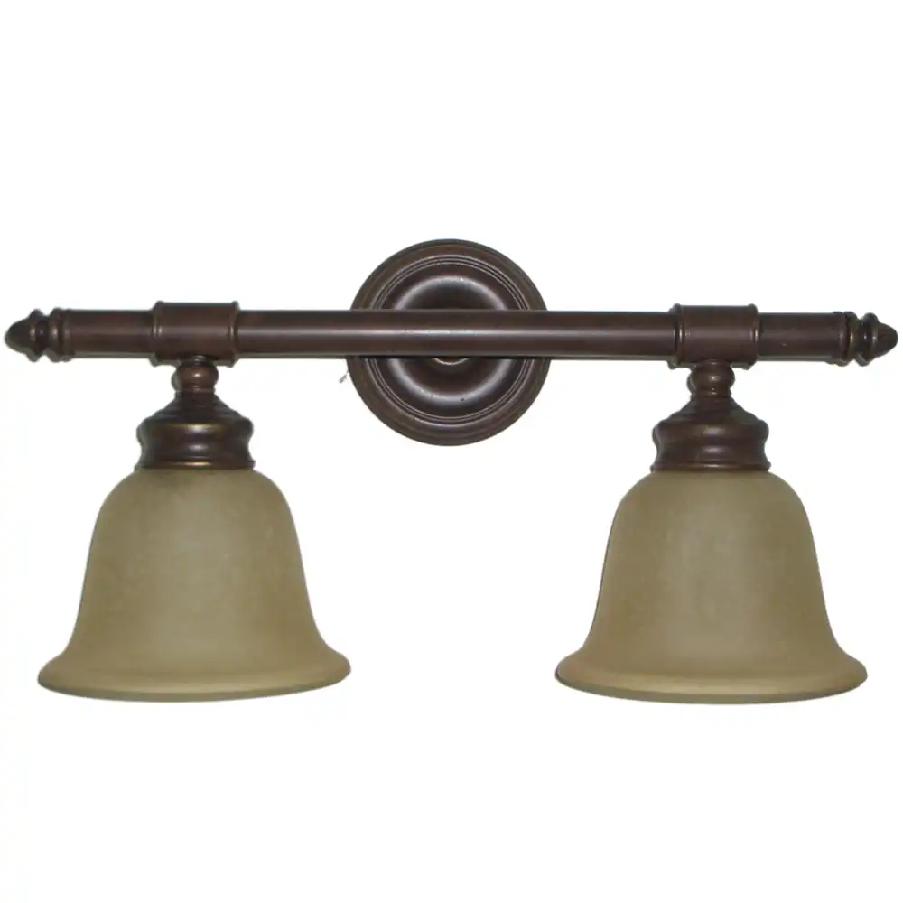 Colonial Charm Heritage Bronze 2-Light Vanity Light with Amber Bell Glass Shades