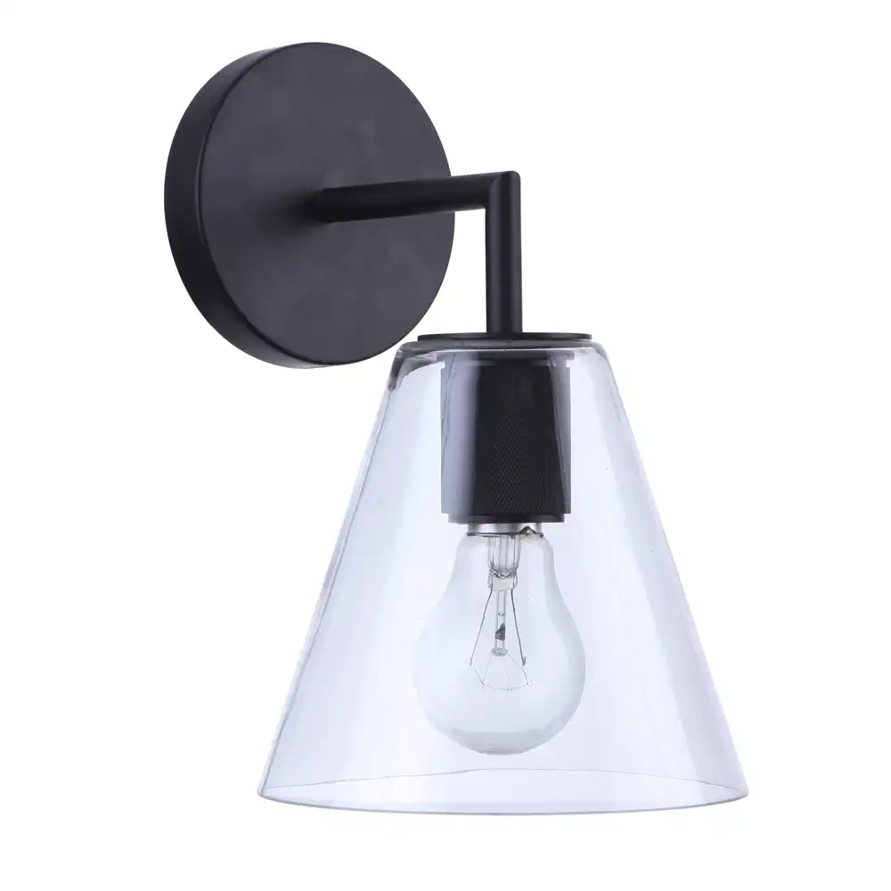 Constructed from robust, high-strength metal, this single-light sconce boasts a stable and enduring structure that guarantees compatibility with long-term use. The sleek matte black finish, meticulously applied, offers a powerful yet understated visual impact, effortlessly complementing minimalist, industrial, and contemporary design schemes. The clear glass cone shade is expertly formed to provide optimal light diffusion, casting a bright and inviting glow while elegantly showcasing the bulb.