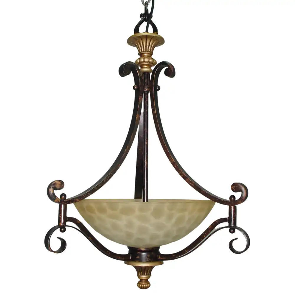 The Distressed American Bronze & Satin Gold 3-Light Pendant Light is an elegant balance of strength, artistry, and warmth, designed to enhance both upscale residential and commercial interiors.