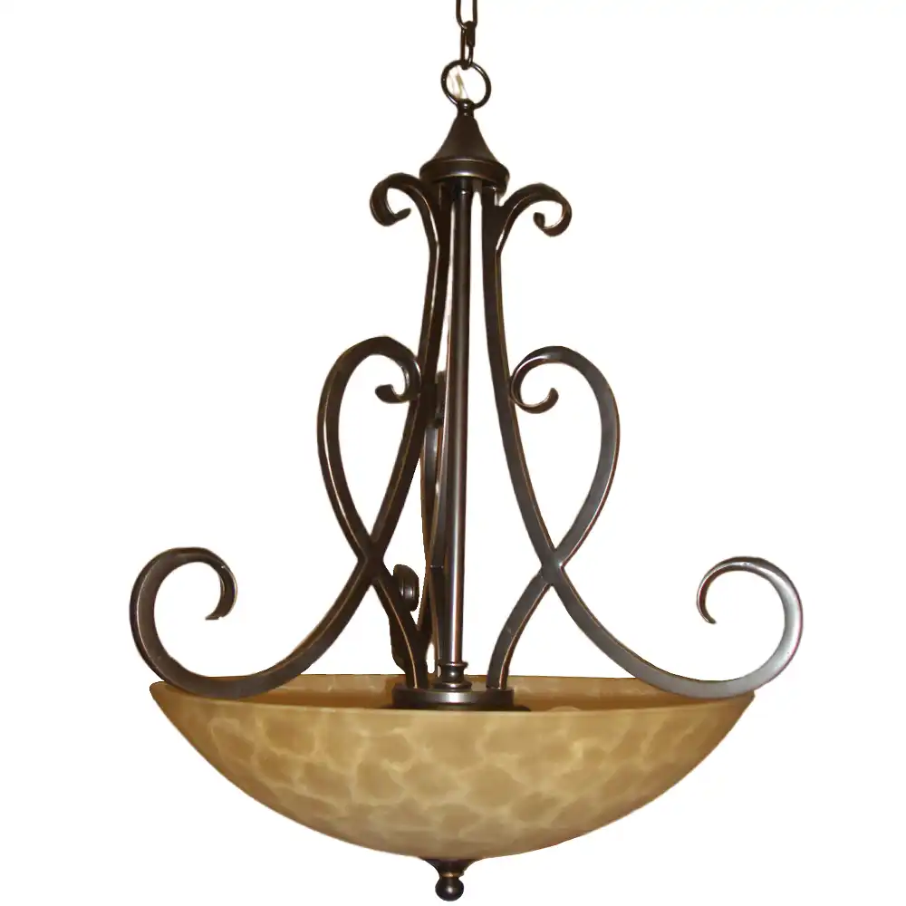 Be the first to review “Distressed Antique Copper 3-Light Flush-Mount Pendant with Burnt Scavo Glass”