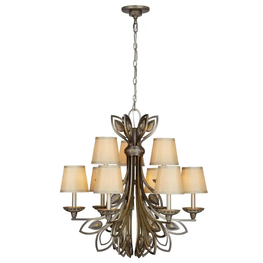 Each detail, from the precision-welded stems to the hand-applied patina, reflects exceptional artistry and the pursuit of lasting quality. Paired with ivory-beige fabric shades, the chandelier diffuses a warm, ambient glow ideal for dining halls, hotel lobbies, and luxury residential spaces.