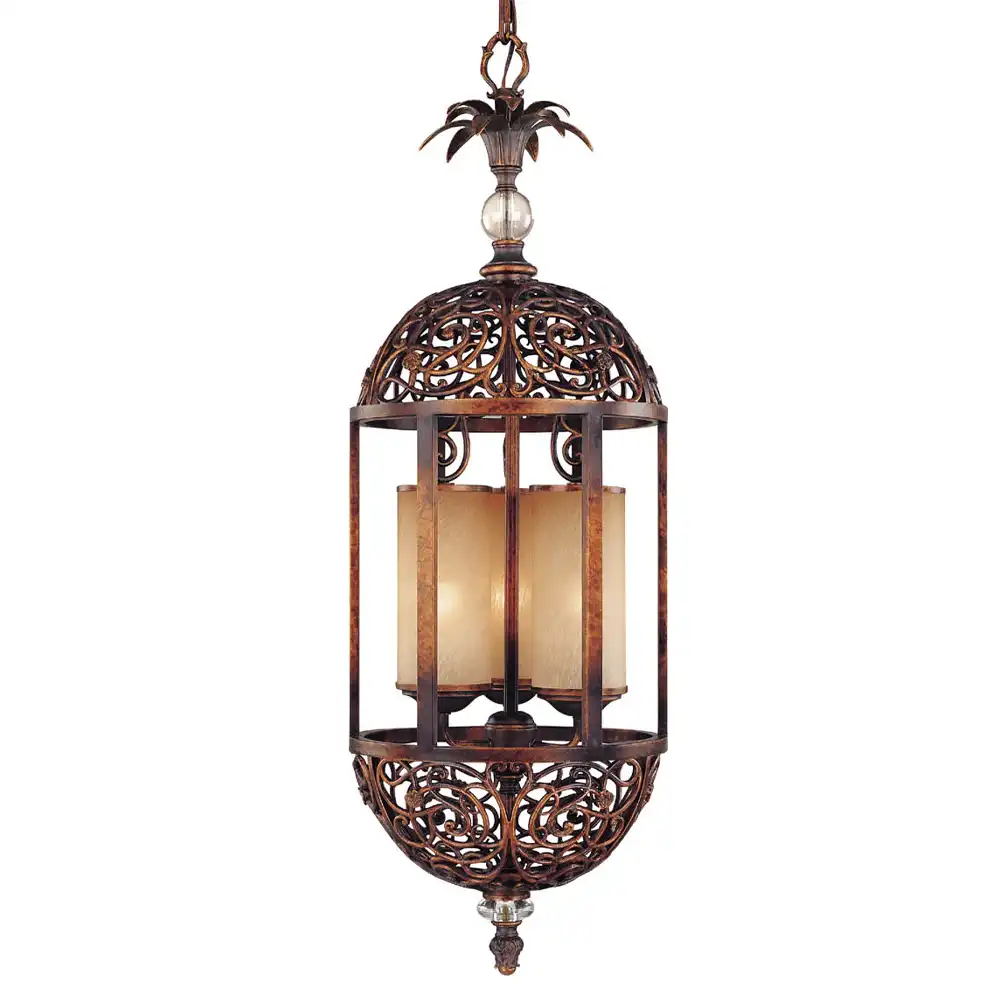 The Florencia 3-Light Pendant is a captivating expression of old-world artistry and modern craftsmanship. Hand-forged from high-strength metal, this exquisite fixture features a Florentine Bronze finish — a sophisticated blend of deep bronze tones brushed with subtle golden and copper highlights, artfully distressed to create a rich, time-worn patina. The finish exudes warmth and classic refinement, perfectly complementing the fixture’s intricate openwork scroll pattern.