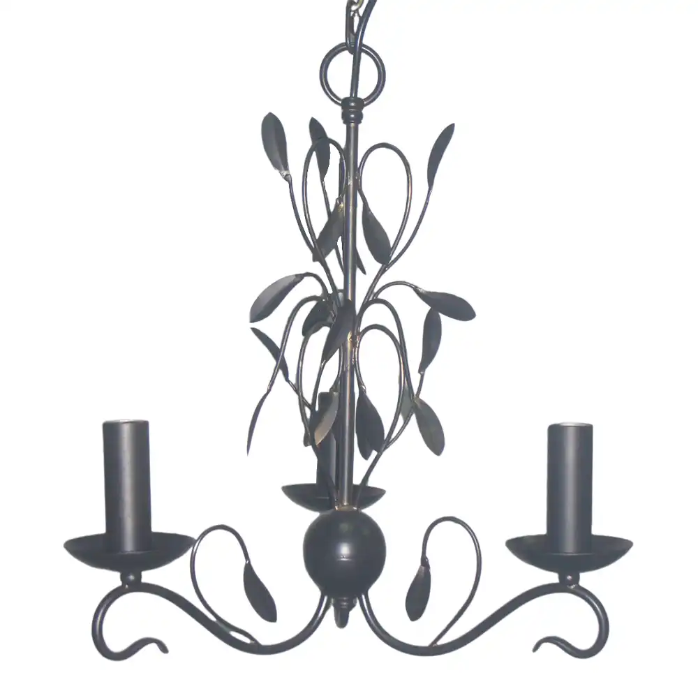 Each detail—from the hand-curved branches to the leaf-shaped accents—reveals the mastery of traditional metalworking techniques. The chandelier’s three candle-style light holders rest upon elegantly curved arms that balance symmetry and fluidity, bringing a touch of organic sophistication to both classic and contemporary interiors.