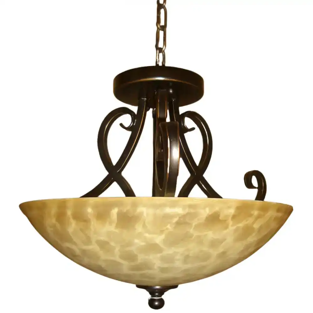 Be the first to review “French Gold Copper 3-Light Semi-Flush Mount Pendant with Burnt Scavo Glass Shade”