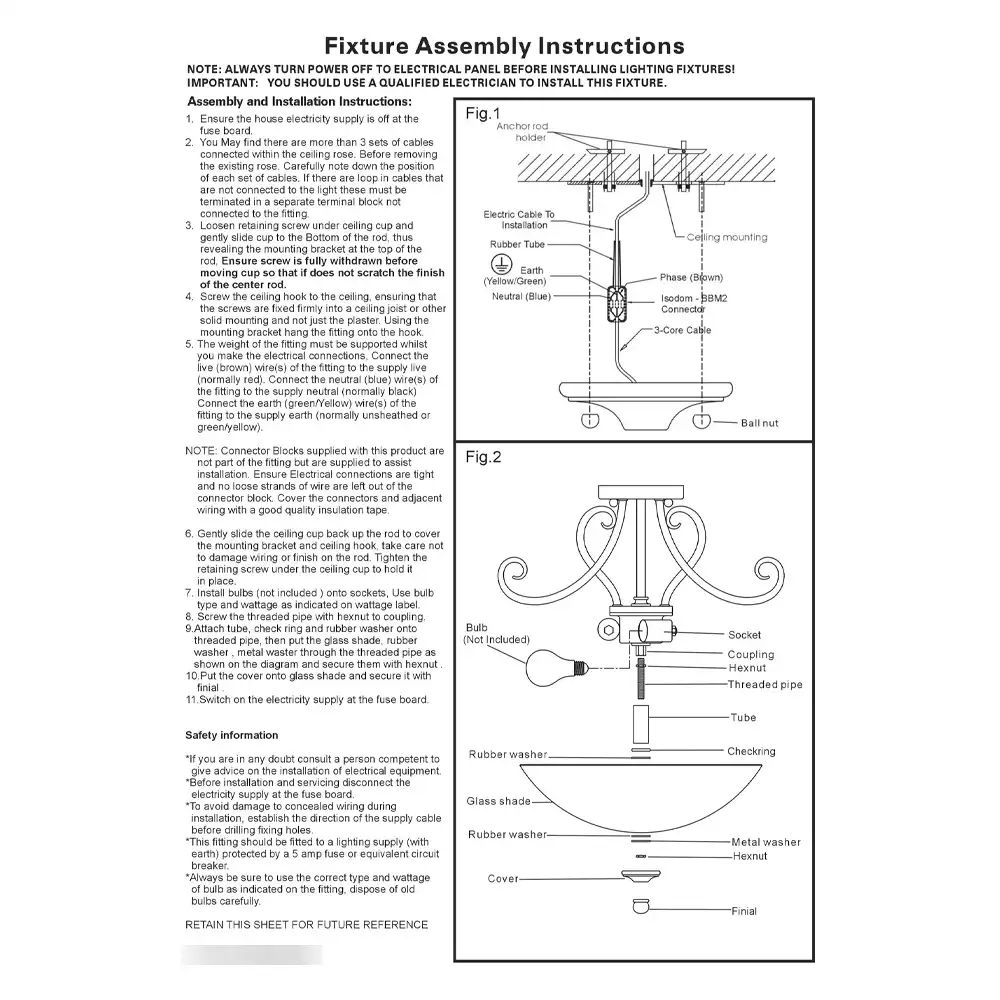 • 3-Light Semi-Flush Mount Pendant – Provides soft, welcoming illumination.