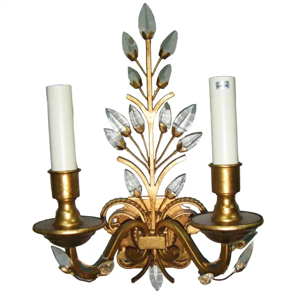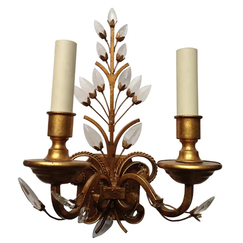 Be the first to review “Gilded Leaf & Crystal Bud 2-Light Wall Sconce with Faux Candle Holders”