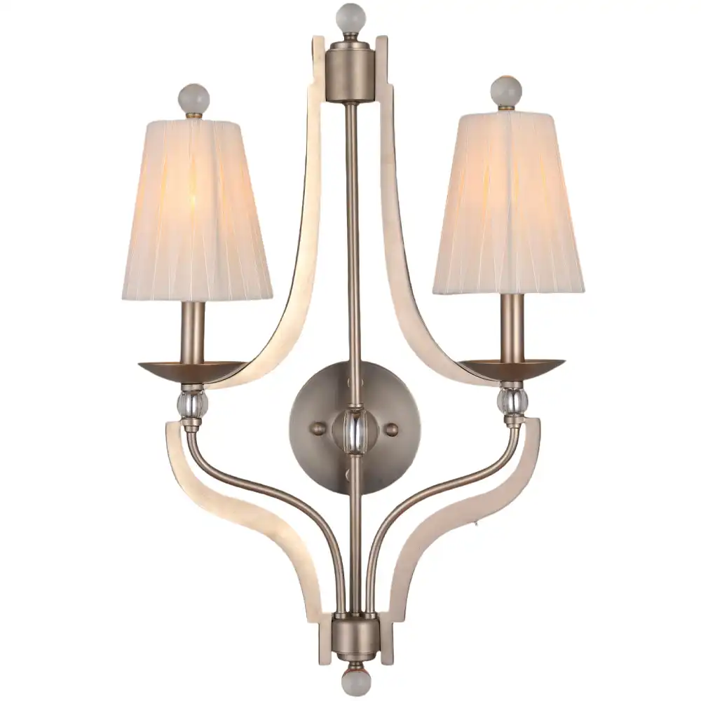 Introduce a touch of elegant sophistication and soft, inviting illumination to your interiors with our Glamorous Transitional Brushed Gold 2-Light Wall Sconce with Pleated Shades and Crystal Accents. Meticulously handcrafted at our professional decorative light fixture factory in China, this exquisite wall lighting piece embodies a profound understanding of glamorous, transitional, traditional, and contemporary interior design. It seamlessly blends high-strength metal with a refined brushed gold finish, delicate pleated fabric shades, and shimmering crystal ball accents. Designed for enduring beauty, stability, and long-term reliability, it’s an ideal selection for discerning designers and end-users seeking distinctive, artistic, and functionally superior lighting solutions for master bedrooms, elegant hallways, formal living areas, or any space desiring a sophisticated, luminous accent.