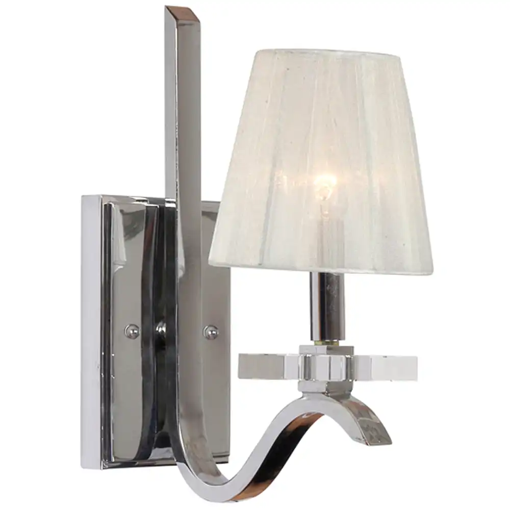Introduce a touch of sophisticated glamour and sparkling, inviting illumination to your interiors with our Glamour Wave Chrome 1-Light Wall Sconce with Sheer Pleated Shade & Crystal Accent. Meticulously handcrafted at our professional decorative light fixture factory in China, this exquisite wall lighting piece embodies a profound understanding of modern, glamorous, transitional, and contemporary interior design. It seamlessly blends high-strength metal with a brilliant polished chrome finish, a stunning clear crystal accent, and an elegant sheer pleated fabric bell shade. Designed for enduring beauty, stability, and long-term reliability, it’s an ideal selection for discerning designers and end-users seeking distinctive, artistic, and functionally superior lighting solutions for bedrooms, hallways, living rooms, or any space desiring a sleek, upscale accent.