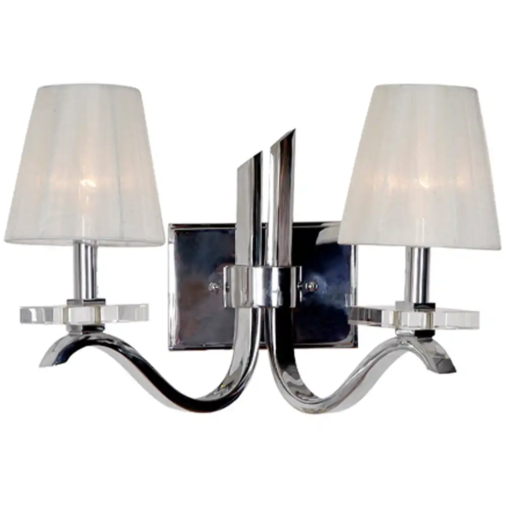 Introduce a touch of sophisticated glamour and sparkling, balanced illumination to your interiors with our Glamour Wave Chrome 2-Light Wall Sconce with Sheer Pleated Shades & Crystal Accents. Meticulously handcrafted at our professional decorative light fixture factory in China, this exquisite wall lighting piece embodies a profound understanding of modern, glamorous, transitional, and contemporary interior design. It seamlessly blends high-strength metal with a brilliant polished chrome finish, two stunning clear crystal accents, and two elegant sheer pleated fabric bell shades. Designed for enduring beauty, stability, and long-term reliability, it’s an ideal selection for discerning designers and end-users seeking distinctive, artistic, and functionally superior lighting solutions for bedrooms, hallways, living rooms, or any space desiring a sleek, upscale accent.