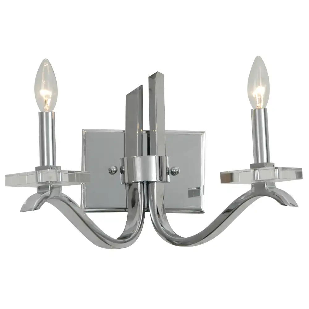 This two-light wall sconce is constructed from robust, high-strength metal, ensuring a stable structure that is built to withstand time and provide long-term compatibility. The dazzling polished chrome finish offers a highly reflective, mirror-like surface that brings a bright, modern touch to any room. This durable finish, combined with the understated rectangular backplate, the gracefully curved “wave” arms, two prominent clear faceted crystal accents at the base of each light, and the two elegant sheer pleated fabric bell shades, creates a striking and versatile presence. The delicate pleated texture of the shades beautifully diffuses the light (bulbs not included), creating a soft, luminous, and inviting ambient glow, while the shimmering crystal elements add a captivating sparkle, perfect for enhancing a serene and stylish atmosphere with a touch of refined luxury.