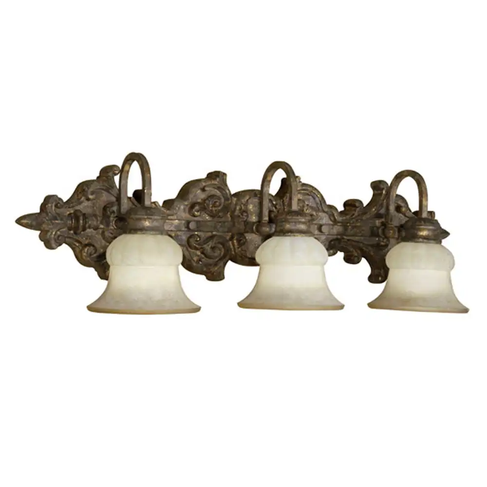 Transform your vanity space into a statement of classical luxury with the magnificent presence and widespread, soft glow of our Grand Baroque Bronze & Frosted Bell Glass 3-Light Vanity Light. Meticulously handcrafted at our professional decorative light fixture factory in China, this exquisite piece embodies a profound understanding of classical, traditional, and opulent interior decoration, blending high-strength metal with intricate, detailed craftsmanship. Designed for enduring beauty and long-term reliability, it’s an ideal selection for discerning designers and end-users seeking truly distinctive, artistic, and luxurious lighting solutions for grand spaces.