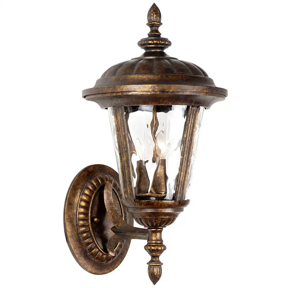 Command attention and provide powerful, welcoming illumination to your home’s exterior with our Grand Manor Aged Bronze Outdoor 3-Light Wall Lantern with Water Glass. Meticulously handcrafted at our professional decorative light fixture factory in China, this exquisite outdoor piece embodies a profound understanding of traditional, colonial, Tuscan, and grand architectural exterior design. It seamlessly blends high-strength metal with a durable aged bronze finish and captivating water glass panels. Designed for enduring beauty, stability, and long-term reliability in outdoor environments, it’s an ideal selection for discerning designers and end-users seeking distinctive, artistic, and functionally superior outdoor lighting solutions for prominent entryways, patios, or large facades.