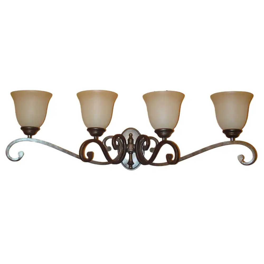 Introduce a touch of timeless elegance and expansive, warm illumination to your interiors with our Grand Scroll Aged Bronze 4-Light Vanity Light with Frosted Bell Glass. Meticulously handcrafted at our professional decorative light fixture factory in China, this exquisite wall lighting piece embodies a profound understanding of traditional, rustic, Tuscan, and transitional interior design. It seamlessly blends high-strength metal with a rich aged bronze finish, elegant scrollwork, and four beautifully frosted bell-shaped glass shades. Designed for enduring beauty, stability, and long-term reliability, it’s an ideal selection for discerning designers and end-users seeking distinctive, artistic, and functionally superior lighting solutions for expansive bathrooms, grand hallways, or large living spaces.