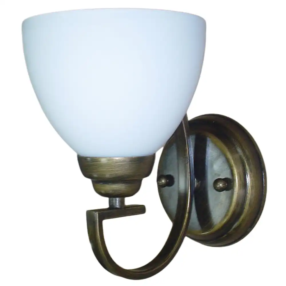 This single-light wall sconce is constructed from robust, high-strength metal, ensuring a stable and sturdy structure that is built to withstand the test of time. The distinguished antique bronze (or aged brass/dark bronze) finish offers a rich, warm tone with subtle aged patina, providing an authentic and classical aesthetic that complements a wide range of elegant color palettes and design schemes. This elegant finish, combined with the clean lines of the round backplate and the gracefully curved, U-shaped arm, creates an artistic and refined presence. A single inverted bell-shaped (or bowl-shaped) opal white glass shade diffuses light softly and evenly, creating a gentle, ambient glow perfect for hallways, living rooms, bedrooms, or as a charming accent in any space seeking a blend of classic design and inviting light.