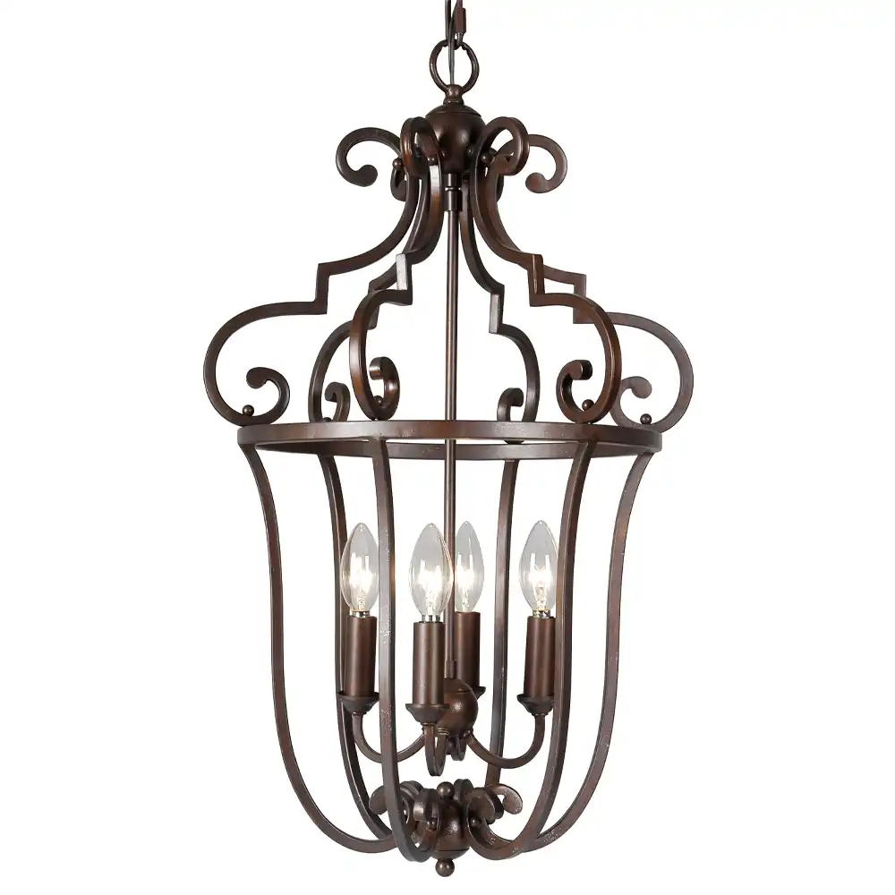 The Isabella 4-Light Iron Chandelier seamlessly blends traditional elegance with refined craftsmanship, perfect for high-end residential and hospitality projects. Handcrafted from high-strength wrought iron, the fixture features intricate detailing and graceful curves, ensuring both structural stability and aesthetic beauty. Finished in a hand-applied Aged Bronze, this sophisticated tone incorporates rich brown and copper hues with a weathered texture, offering a timeless, antique-inspired charm.