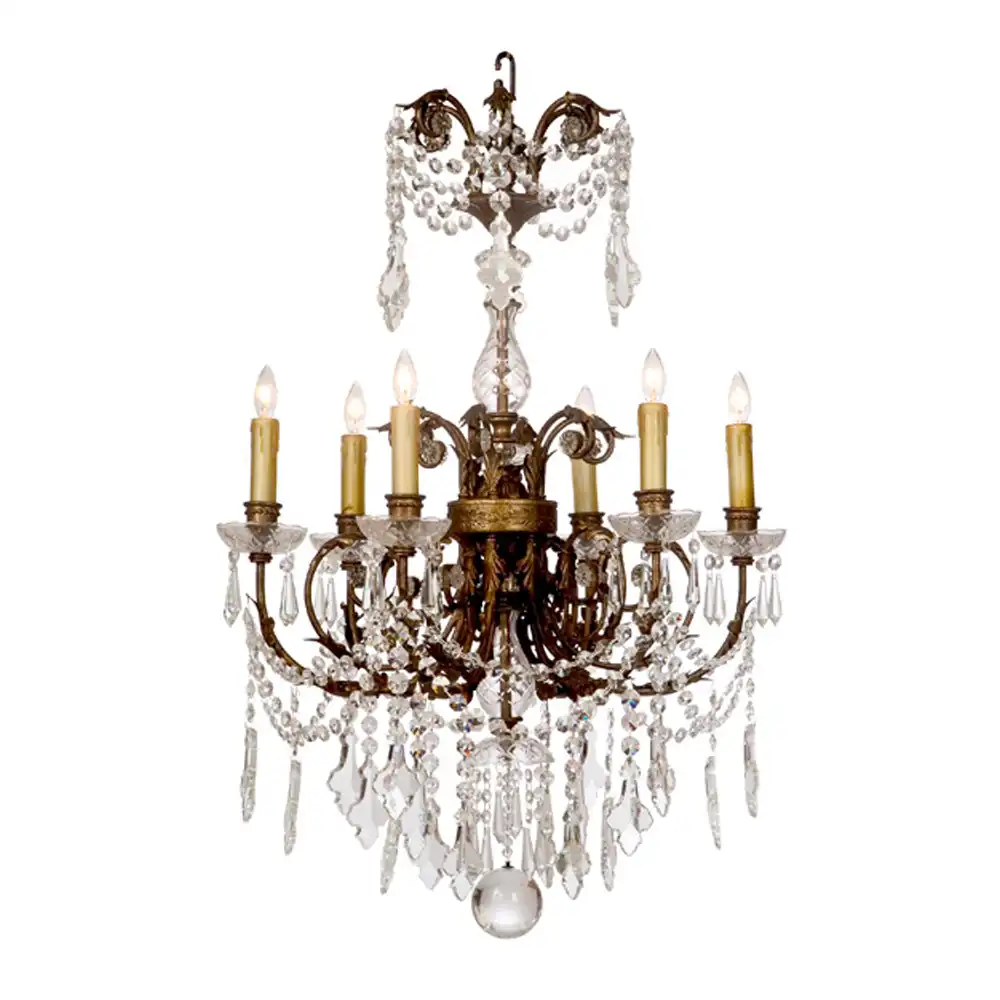 The Liora 5-Light Classic Crystal Chandelier is a masterpiece of timeless sophistication, blending regal European charm with exquisite handcrafted artistry. The frame is forged from high-strength metal and finished in a rich antique bronze gold patina, featuring warm bronze undertones delicately brushed with aged gold highlights for a luxurious, time-worn luster. This dual-tone finish enhances the chandelier’s ornate metalwork, lending a graceful depth and elegance that complements both traditional and transitional interiors.