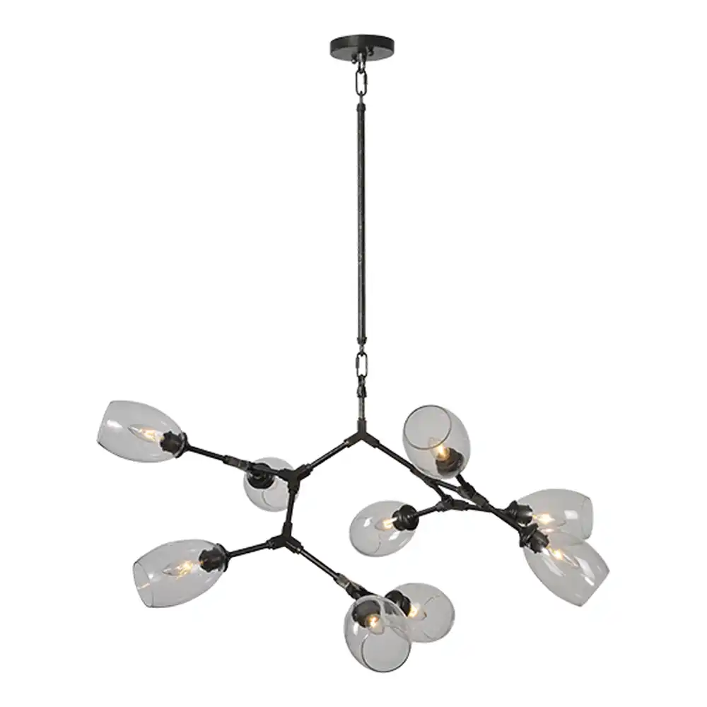 The fixture’s contemporary “branching” design is adorned with nine exquisite smoked glass lampshades. These shades provide a captivating visual effect, softly diffusing the light to create an inviting, ambient glow while adding a touch of modern sophistication. The stable structure and premium materials underscore our commitment to superior craftsmanship, guaranteeing a fixture that is both a statement piece and a durable, long-term asset to any interior.