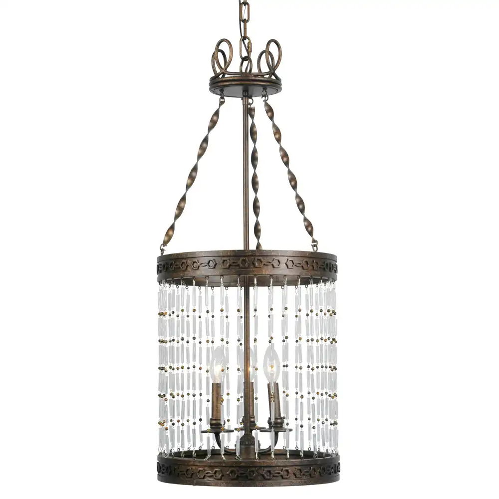 The Marseille 3-Light Rustic Bronze Crystal Drum Chandelier is an exquisite fusion of classical craftsmanship and contemporary elegance. Handcrafted from high-strength metal, this fixture combines a refined cylindrical form with intricate detailing that celebrates artisanal excellence.