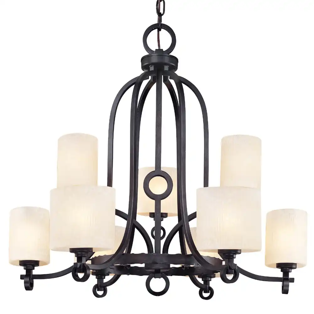 • Elegant Two-Tiered 9-Light Design: Features 3 drum-shaped shades on the upper tier and 6 elliptic cylinder shades on the lower tier for comprehensive, multi-directional illumination.