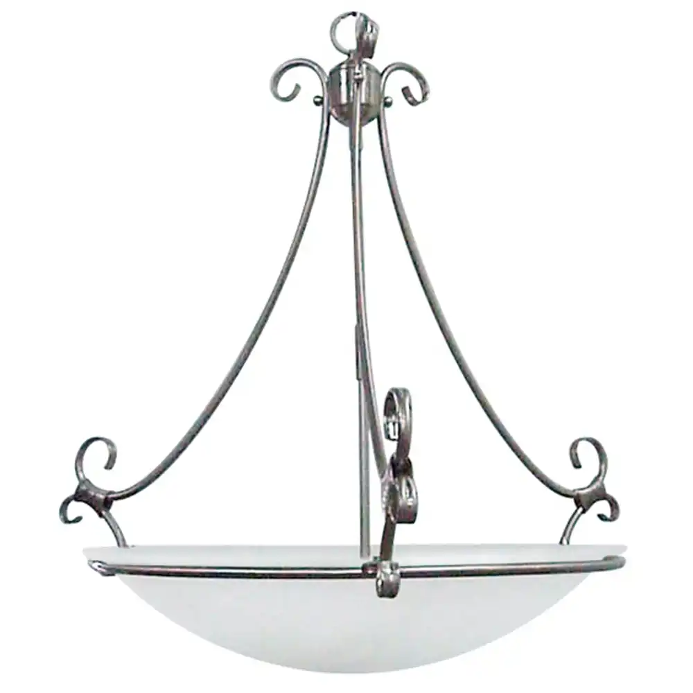 Handcrafted 3-light satin nickel pendant with C-shaped arms and bowl frosted glass shade, customizable for OEM, ODM, and wholesale lighting projects.