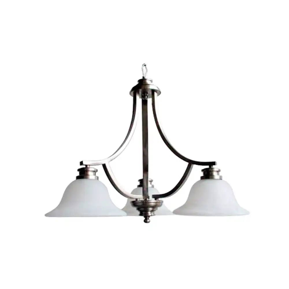 The Modern Satin Nickel 3-Light Pendant Light blends contemporary refinement with timeless craftsmanship. Handcrafted from high-strength metal, this fixture showcases a sleek satin nickel finish — a smooth, brushed silver tone that exudes understated luxury and modern simplicity. Its elegant arched frame design lends both structural balance and visual grace, while the frosted glass shades diffuse a warm, even illumination that enhances the ambiance of any dining, kitchen, or hospitality space.