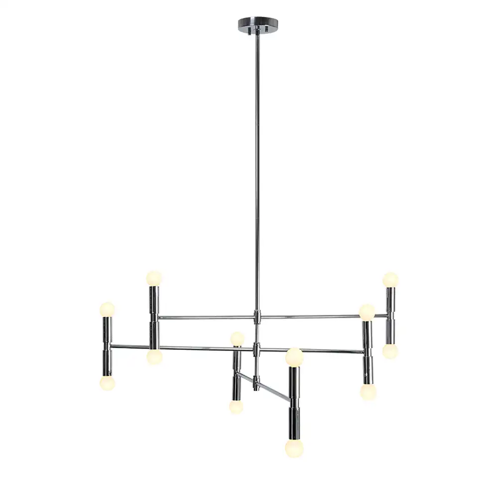 The chandelier is meticulously handcrafted from high-strength metal, ensuring an exceptionally stable and robust structure that is built for enduring performance and durability—a critical requirement for demanding commercial and hospitality installations. The defining feature is its stunning mirror-polished chrome finish. This exquisite finish is achieved through a meticulous electroplating process, resulting in a highly reflective, brilliant silver surface that mimics the gleam of polished silver or fine jewelry. It is impeccably smooth, uniform, and pristine, offering a sharp, contemporary look that is easy to maintain and adds a touch of luxurious sparkle to any environment.