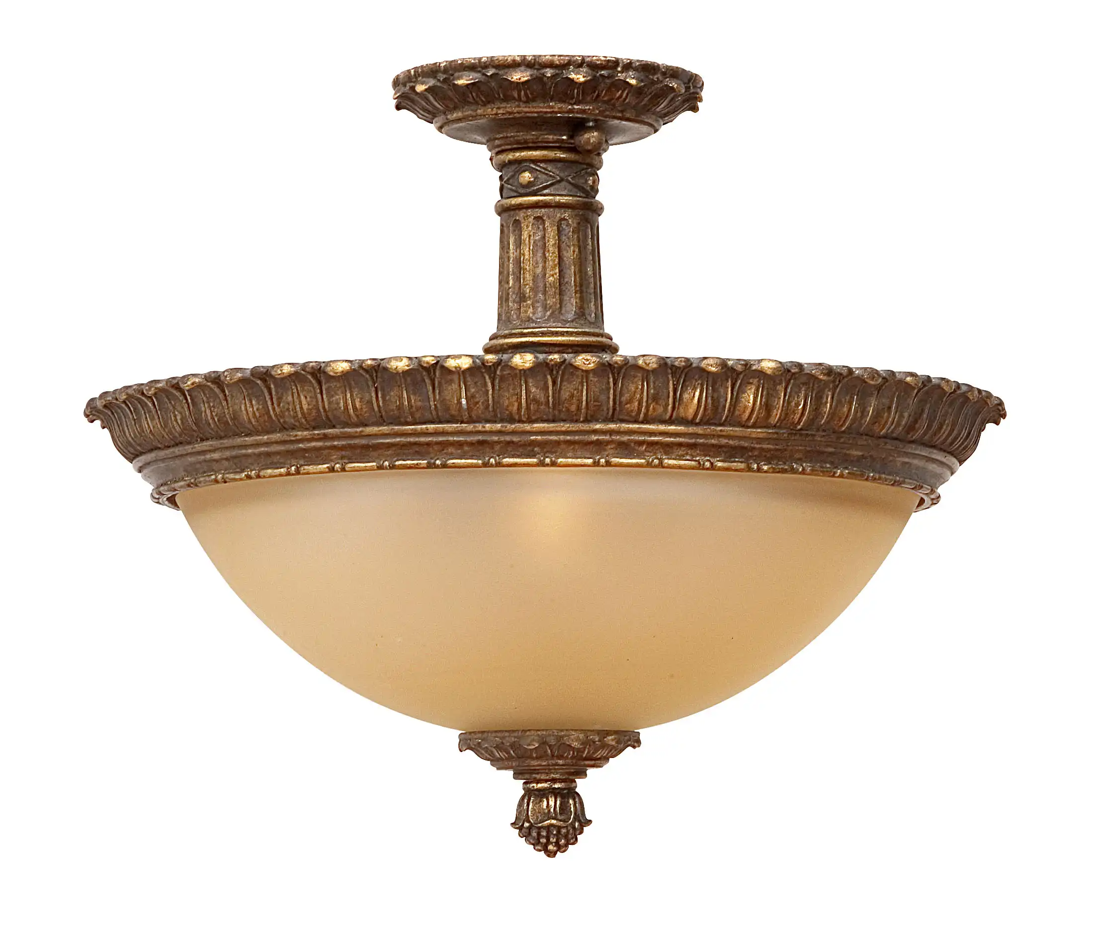 • 3-light semi-flush pendant in antique bronze with Moroccan Gold finish