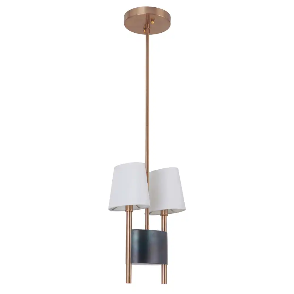 Modern 2-light pendant with brushed champagne bronze and matte charcoal grey metal finish, featuring white fabric shades. Handcrafted high-strength metal. Fully customizable for B2B/OEM/ODM projects.